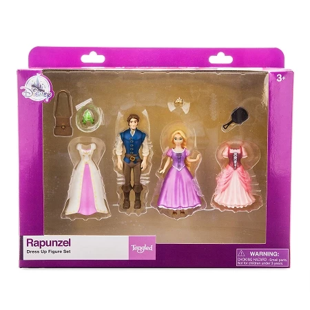 Figure Set. Rapunzel comes with three glamorous dresses that are easy to