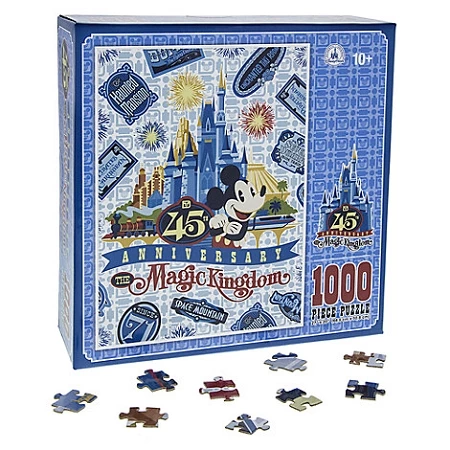 If you build it, they will come to see this meticulous 1000-piece Magic Kingdom Jigsaw Puzzle honoring 45 years of the park at Walt Disney World Resort. Mickey plays host to a burst of vintage logos and icons you can piece together!
