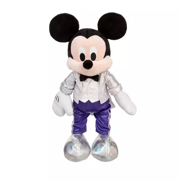 Mickey is dressed to impress as he hosts the Disney100 celebration in style with this soft commemorative plush. Looking smart in a ”platinum” tuxedo, satin vest, bow tie and purple satin pants, the elegant outfit is accented with iridescent shoes. Congratulations, Mickey!