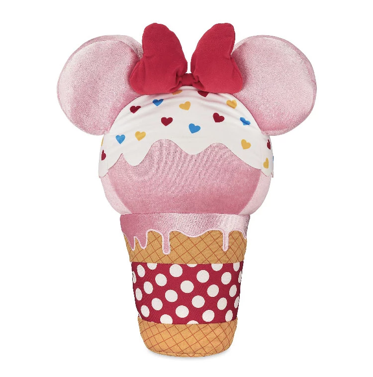 Enjoy sweet snuggles with your favorite Disney Parks delicacy with this Minnie Mouse Ice Cream Cone Plush. Featuring the tasty treat’s sprinkles topped with a Minnie bow and a hint of confectionery fragrance, this plush is a delicious delight!